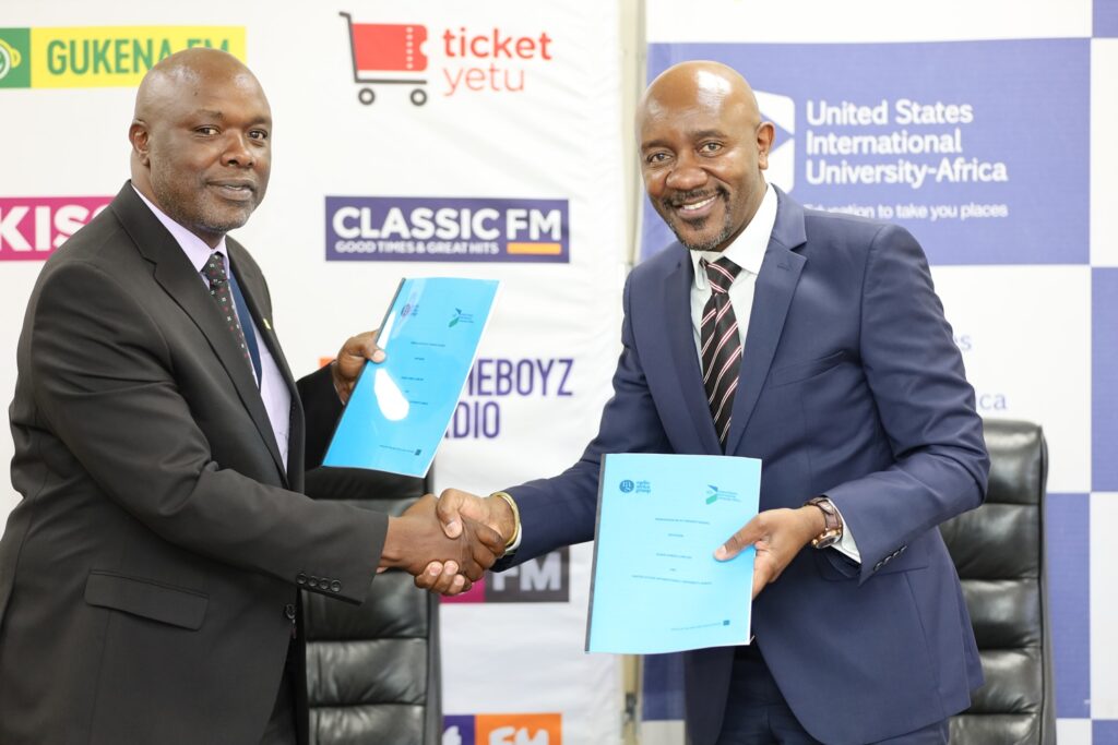 On Wednesday, January 21, USIU-Africa signed a Memorandum of Understanding (MoU) with Radio Africa Group. The partnership seeks to facilitate and enhance collaborative activities between the two institutions in the areas of internship opportunities, industry partnership content collaboration, podcast and media production initiatives, executive coaching and professional development, facility and studio collaboration, data journalism and AI Integration, stakeholder forum on creative art and media education. Beyond internships, the MoU outlines content collaboration across print, digital, and podcasting platforms. USIU-Africa students will submit articles, podcasts, and digital projects for possible publication under Radio Africa’s editorial standards. The two institutions will also co-produce a podcast competition dubbed “PodHack” (also referred to as PODCATHON), jointly own intellectual property rights for student content, and explore commercialization opportunities for standout productions.